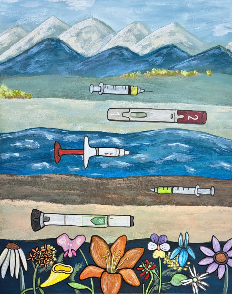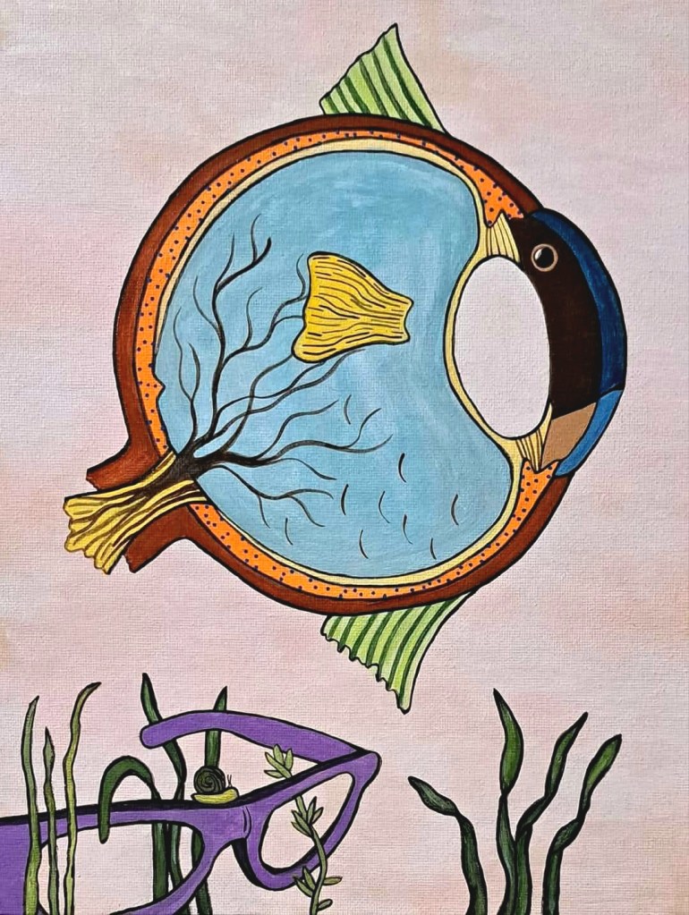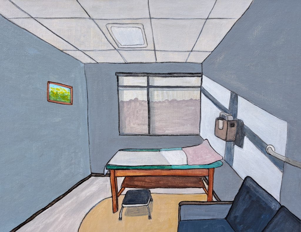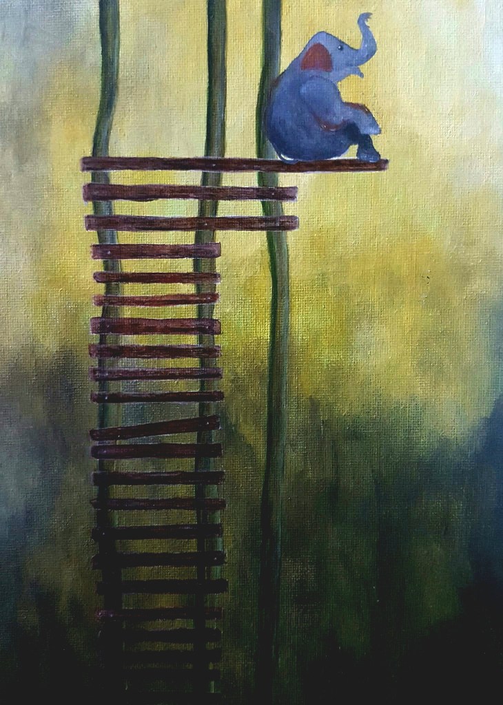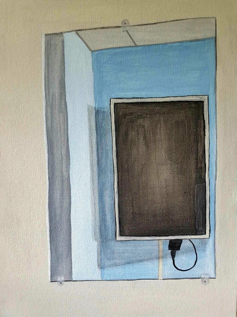 There are elements of chronic illness in many of my paintings. Sometimes they are hidden, but other times they are more prominent. The images shown here have been created to portray some aspect of being chronically ill. I will say a word about the term “disability” here. It does not necessarily mean the same thing as “chronic illness,” but in my case and many other people’s. the terms do often overlap. I think it’s important to use both words when they apply, but it’s also important to remember that whatever words we use, they are ultimately just words. What are we really trying to say?