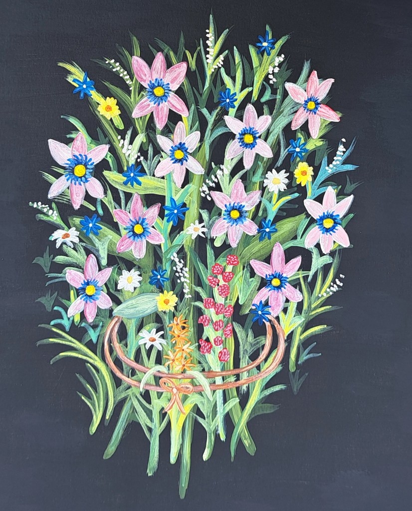 Last is Séraphine de Senlis, one of my favorite painters, but let’s be real, everybody I’ve mentioned is one of my favorite painters. This imitation is based on her Grande Bouquet Champêtre completed in 1927. I’ve studied her for years, you can see more of my Séraphine pieces here.