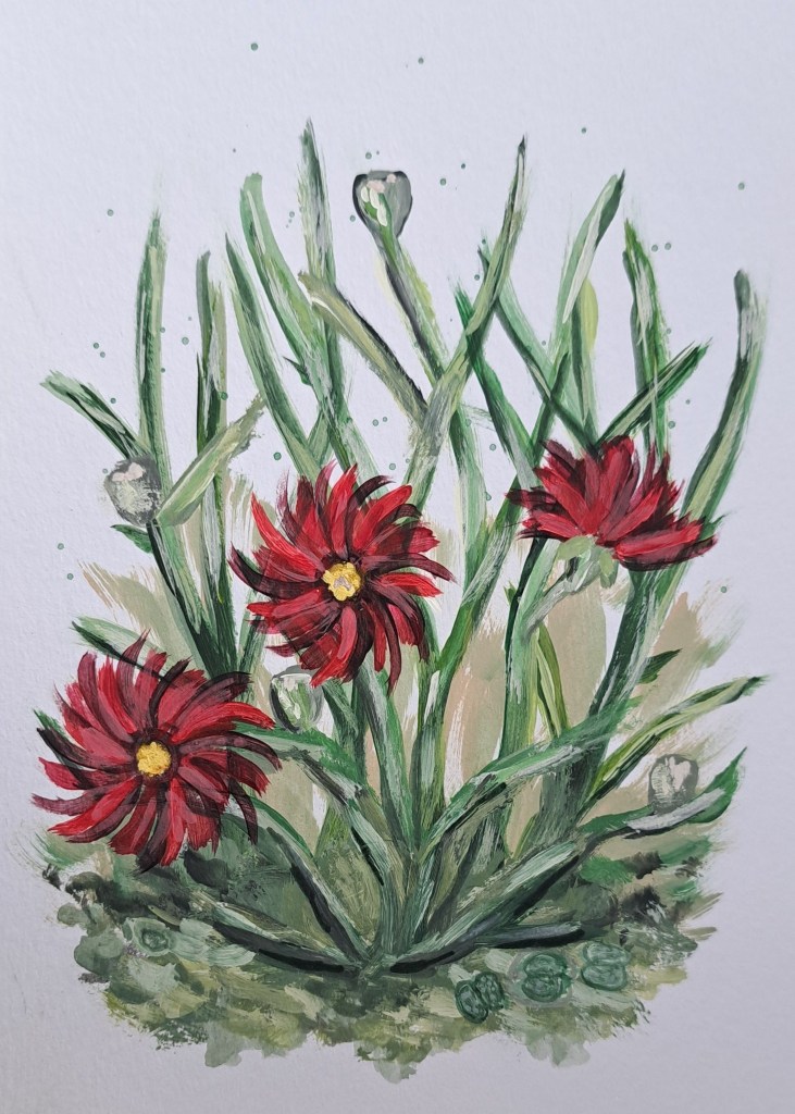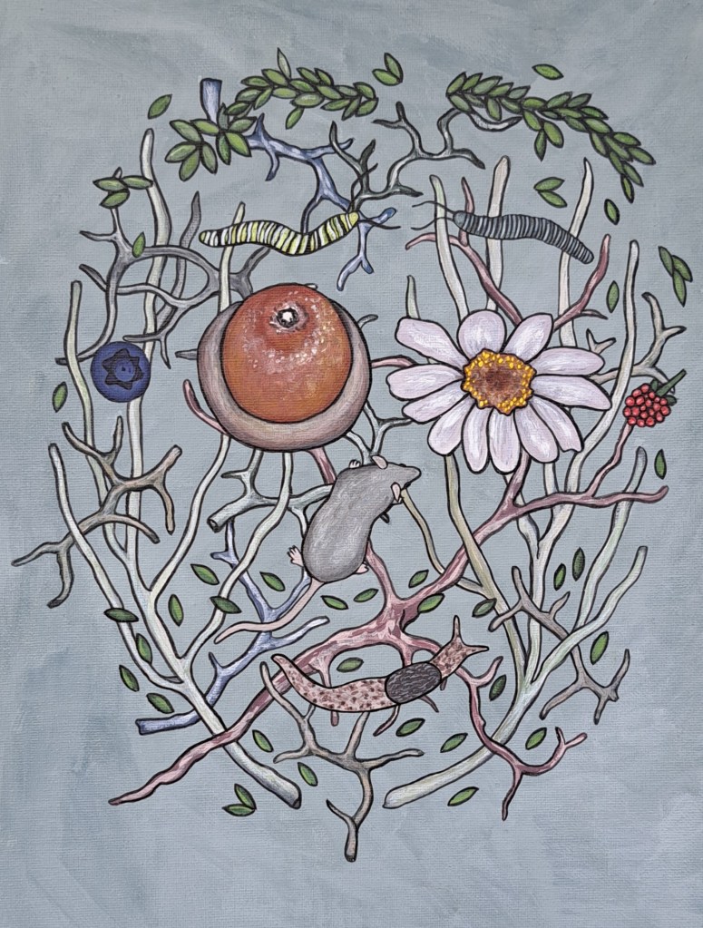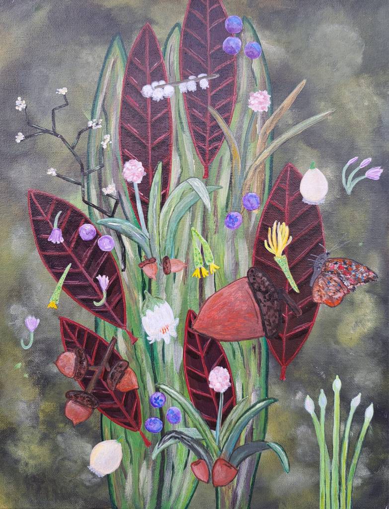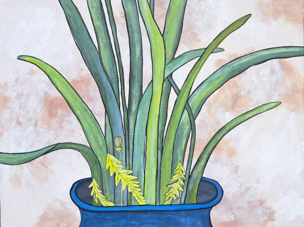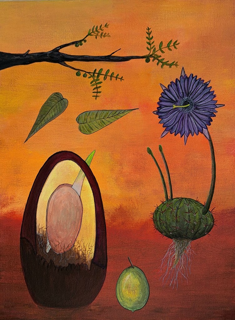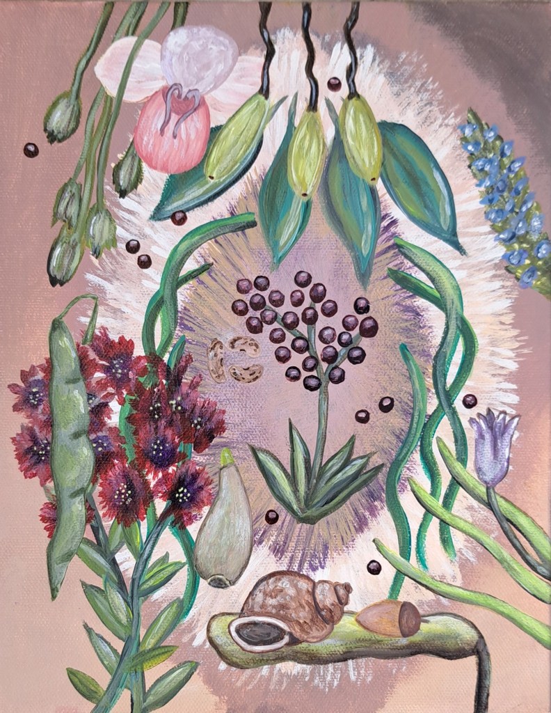 I find that I paint mostly plants because I think about mostly plants. We live in homes built from trees, wear clothing made from cotton, and eat meals based on grains and greens and beans–without plants, where would we be?