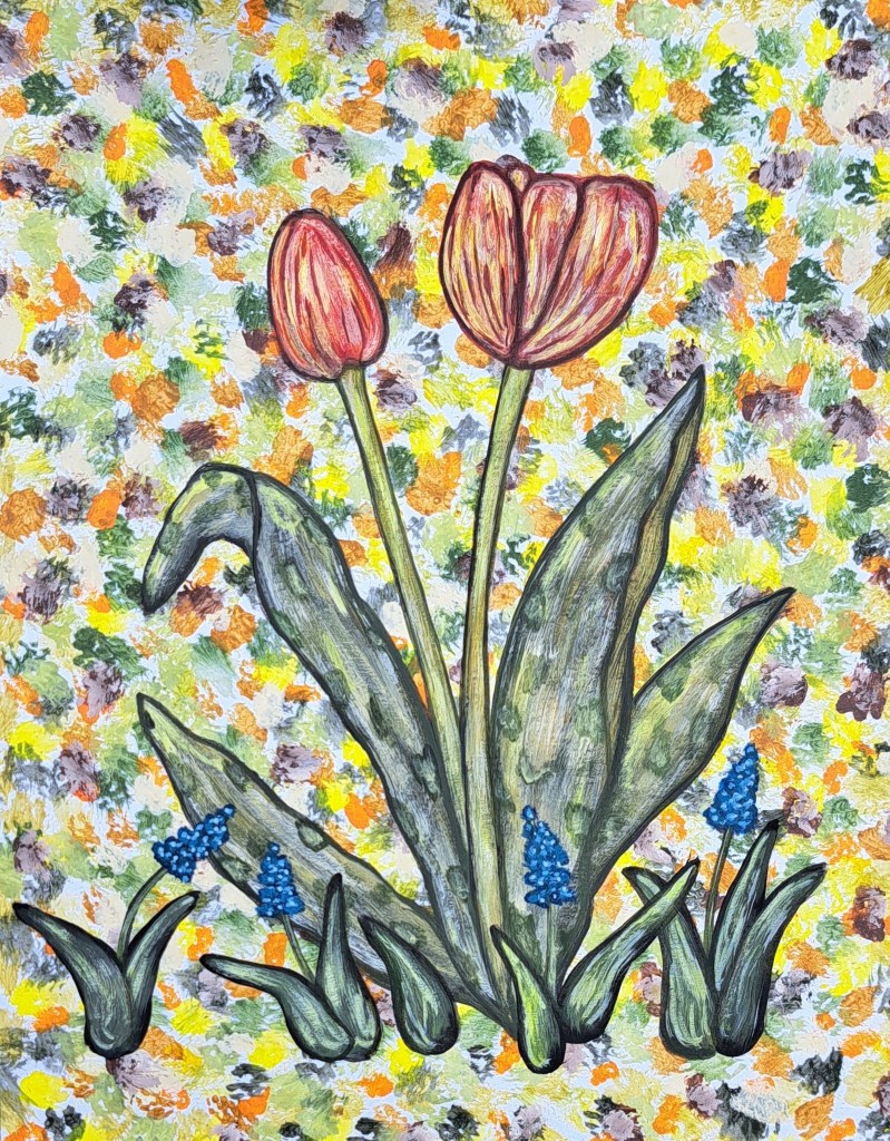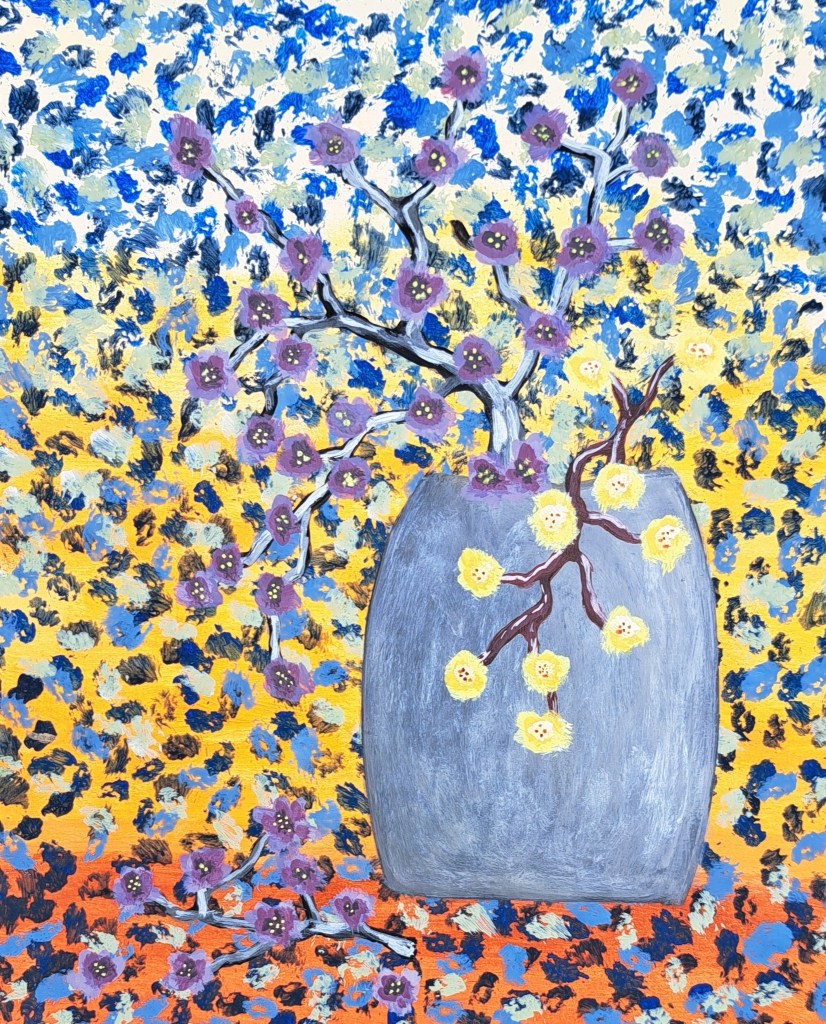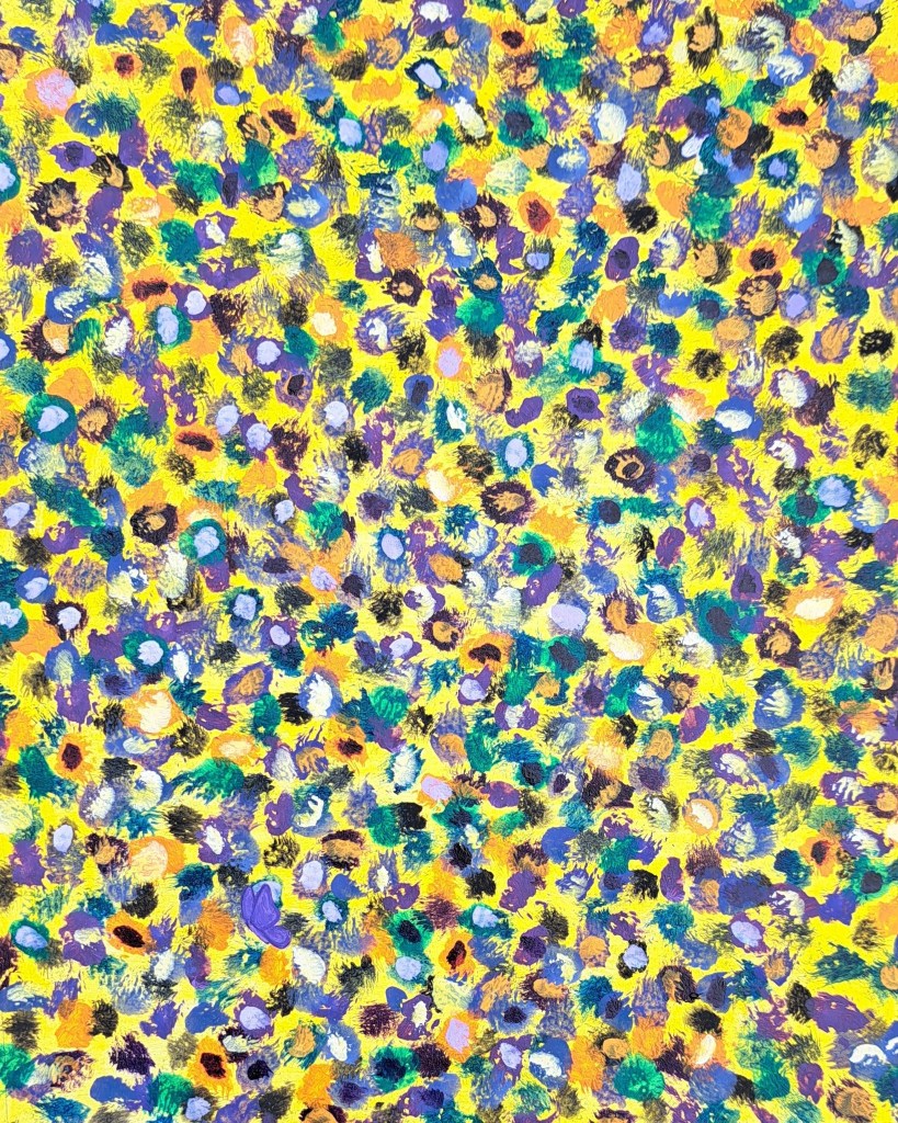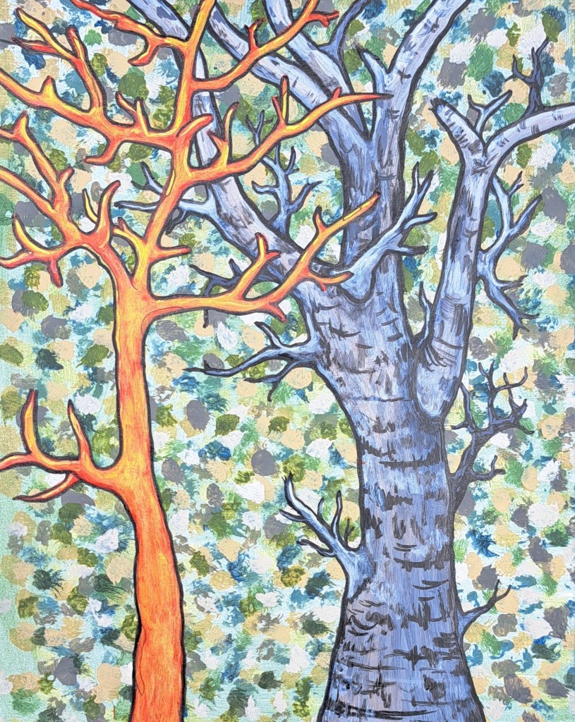 Playing around with an old brush making loose shapes, mostly as a background element. A short series done in acrylic on 8 x 10 inch multimedia paper. Summer 2025.